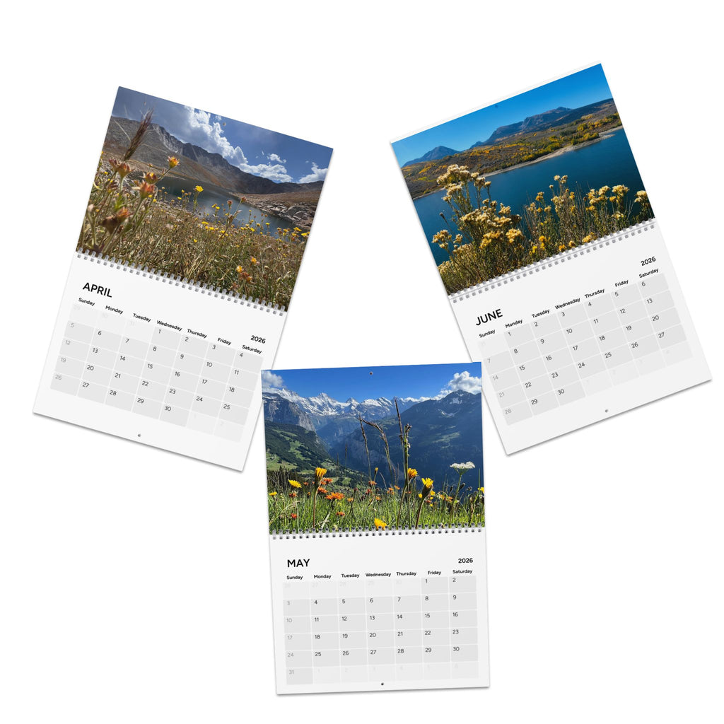 This 2026 wall calendar brings wide-open landscapes and quiet moments into your everyday routine. Each month pairs a bold, full-bleed photograph above a clean, easy-to-read date grid, giving you space to plan while you linger on the image below. The thick 270gsm semi-gloss paper and vibrant printing make colors pop — from snowy fields with draft horses to close-up wildflowers against mountain ranges. A silver 3/8" wire binding and centered hanging hole make flipping months and mounting on a wall simple and sturdy. Thoughtful details like recyclable materials (remove wire binding first) and a generous 10.8" × 8.4" page size keep it practical and sustainable. Holidays are intentionally left unmarked so the calendar can flex to your schedule and traditions.